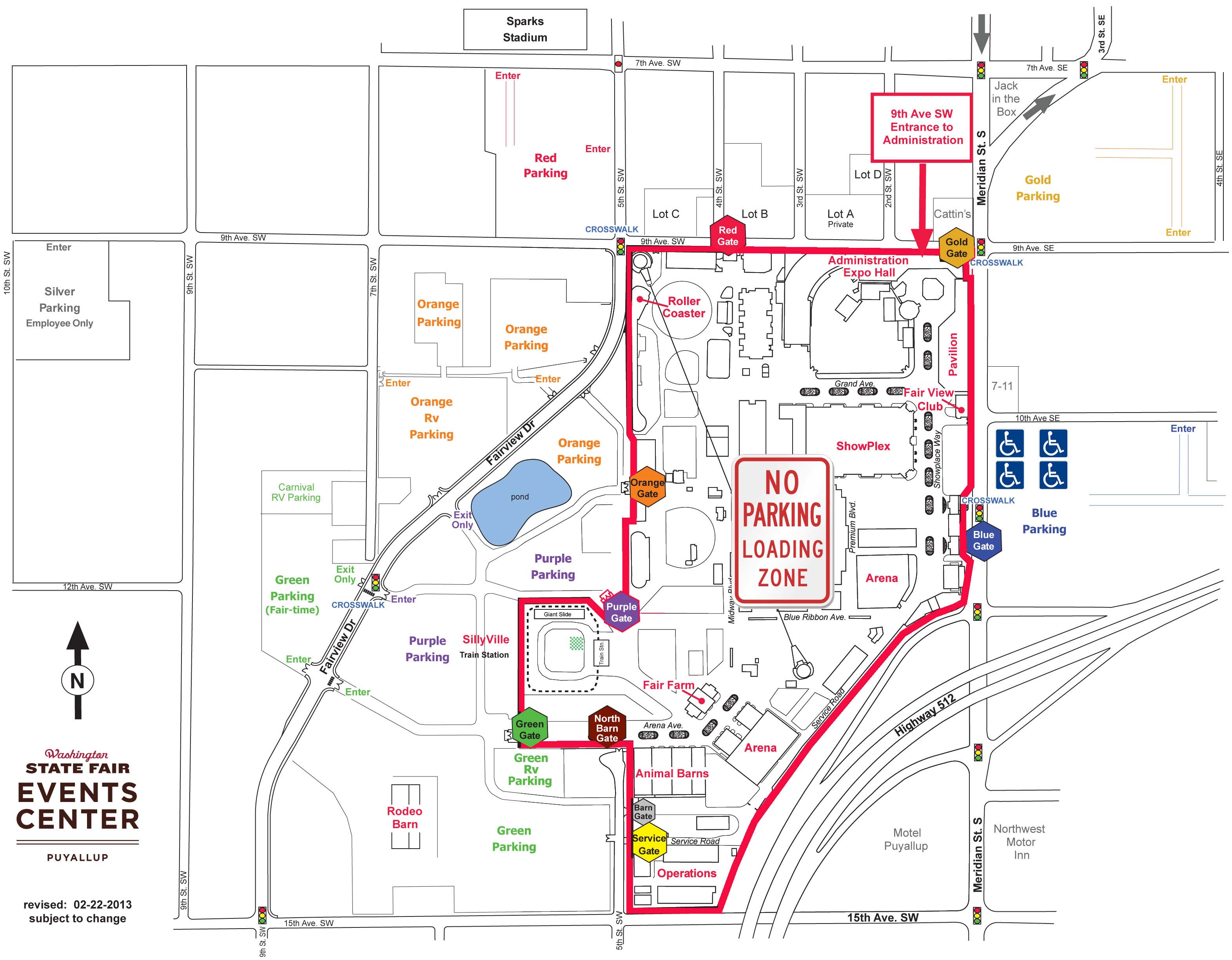 Loading and unloading vehicles is permitted inside the Washington State Fair & Events Center on Friday. Loading and unloading on Saturday and Sunday, mornings is from 7:30 AM to 8:45 AM, after which the owner must remove their vehicle to designated parking lots outside the gated areas. Failure to do so may result in the vehicle being towed at the owners expense. Loading out on Sunday may not begin prior to 3:00 PM.